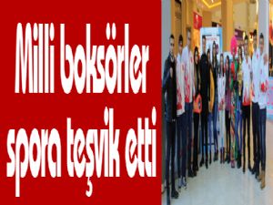 Erzurum'da alışveriş merkezinde stant açan milli boksörler gençleri spor yapmaya teşvik etti.