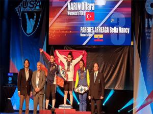 ABD'de süren Yıldızlar Dünya Halter Şampiyonası'nda milli sporcuların madalya sayısı 9 altın, 3 gümüş, 8 bronz olmak üzere toplam 20 madalyaya ulaştı. 76 kiloda mücadele eden Dilara Narin koparmada 96 kilo, silkmede 129 kilo toplamda ise 225 kiloluk derecesiyle dünya rekoru kırdı ve 3 altın madalya kazandı. Dilara Narin madalyasını Los Angeles Başkonsolosu Can Oğuz'dan aldı ve sevincini ise Halter Federasyonu Başkanı Tamer Taşpınar ve teknik heyetle yaşadı.