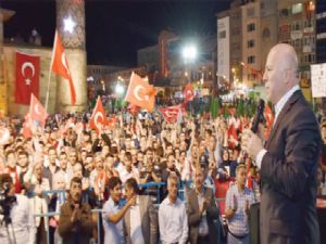 Başkan Sekmen, konuşmasında çok önemli bir ayrıntıya dikkat çekti. Sekmen, 15 Temmuz gecesi 1099'da 1. Haçlı Seferi'nin yapıldığını hatırlatarak, FETÖ'nün de darbeyi bir haçlı bayramına çevirmek istediğini bildirdi. Sekmen, şunları kaydetti: "Bakınız bu terörist, bu soysuz öyle bir hain ki o geceyi Haçlı bayramına çevirmek istemiş. 15 Temmuz gecesinde 1099 yılında 1. Haçlı Ordusu, Kudüs ve Mescid-i Aksa'yı ele geçirmişti. Bu soysuzlar da, vatan haini uşaklarına 15 Temmuz'da İslam'ın kalbi, Müslüman ülkelerin merkezi Türkiye'yi ele geçirmek için darbe yaptırdı. Şimdi soruyorum size? Bu haçlı zihniyetinin uşakları, bu kahpelere bu ülke vatan olabilir mi? Onların vatanı var mı? Onlar bu azizi vatanı Haçlılara vermek, onların istilalarına kolaylık sağlamak için ellerinden geleni yapmaya gayret ettiler. İnsan olan ekmeğini yediği vatanına, milletine silah doğrultur mu? Bunu yapsa yapsa vatan düşmanları, devlet hainleri, millet hainleri yapar. Sizlerden istirhamım; ülkemiz ve milletimizin birlik ve beraberliği için sürekli dua edelim. Mevlam, vatanımıza, milletimize ihanet eden paralel devlet yapılanmasını ve onun hain işbirlikçilerini Kahhar ismi sıfatıyla kahretsin? Türk milleti aziz bir millettir. Bu meydanları dolduran sizlere ne kadar teşekkür etsek, sizi ne kadar tebrik etsek, sizi ne kadar takdir etsek yine azdır. Siz milli mücadelenin her bir döneminde asırlardır hep böyle öncü oldunuz. Vatan için, millet için hep canınızı feda ettiniz ve yine görüyorum ki canınızı, vatan ve millet için feda etmeye hazırsınız. Nöbete Sayın Cumhurbaşkanımız, Başkomutanımız 'Tamam' deyinceye kadar devam edeceğiz." Demokrasi nöbetinde seher vakti 1 milyon Tebbet Suresi okundu, teheccüd namazı kılınarak milletimizi kahpece vuran FETÖ ve vatan hainlerinin kahrolması için dualar yapıldı.