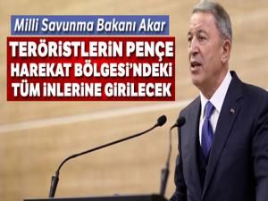 Bakan Akar, milletin gösterdiği sevgi, güven ve ettiği duaların Mehmetçik için ilham kaynağı olduğunu vurgulayarak, "Asil milletimizin Silahlı Kuvvetlerimize olan güveni bizim için büyük bir takdir meselesidir. Bu güvene layık olabilmek için elimizden geleni yapmaya devam ediyoruz. Pençe Harekatımız devam ediyor. Teröristlerin Pençe Harekat bölgesindeki tüm inlerine girilecek. Orada en son terörist etkisiz hale getirilmeden de o bölgeden çıkmayacağız. Orayı teröristlerden temizleyeceğiz, arındıracağız" diye konuştu.