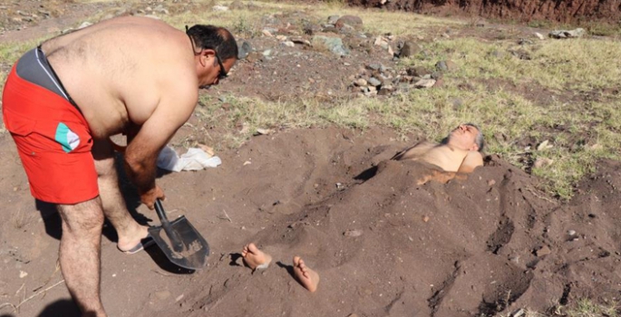 Vatandaşlar, eklem ağrılarından romatizma hastalıklarından kurtulmak için kum banyosu yaptıklarını söylüyor.
