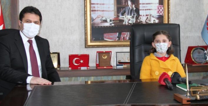 Milli Eğitim Müdürlüğü makamında açıklamalarda bulunan makamını 4. sınıf öğrencisi İdil Duru Kalçık, “Bir an önce yüz yüze eğitime geçmek için herkesten destek bekliyoruz. Temizlik maske ve mesafe kurallarına uyarsak okulumuzda yeniden eğitim ve öğretime başlayabiliriz” diye konuştu.