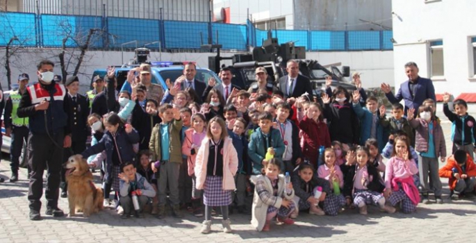 Minikler, jandarmanın kullandığı araç gereçler ve silahlar hakkında bilgiler aldılar. Ziyarette arama kurtarma köpekleri öğrencilerin ilgi odağı oldu.
