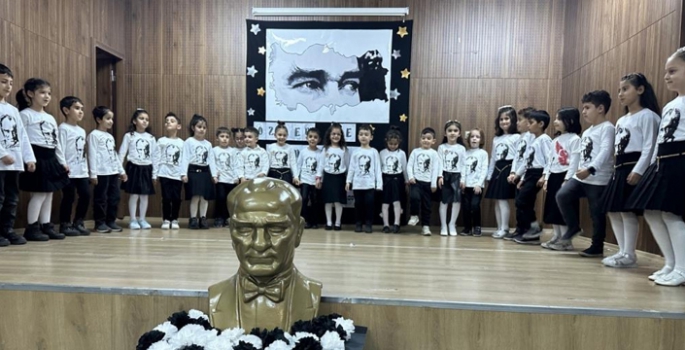 Atatürk’ün hayatını konu alan etkinlikte öğrenciler gösterilerini sundular.