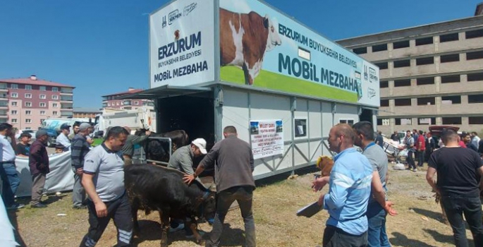 Tüm ikazlara rağmen boş arsalarda, sokak araları veya apartman bahçelerinde kurban kesimine sıkça rastlanan Erzurum’da, Büyükşehir Belediyesi beş yerde kurduğu mobil kesim konteynerleri ile vatandaşlara rahat ve hijyen imkanı sunan ortamlar oluşturdu.