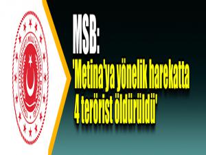 MSB:"Irak'ın kuzeyindeki Metina bölgesinde tespit edilen bölücü terör örgütü mensubu 4 PKK'lı terörist, hava harekâtıyla etkisiz hale getirildi. Operasyonlarımız hız kesmeden devam edecek."