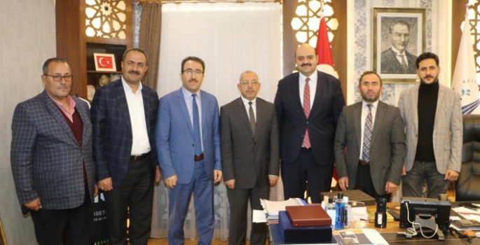 İlçe müftüleriyle birlikte Aziziye Belediyesini ziyaret eden Erzurum Din Görevlileri Derneği Başkanı Emrullah Kaçar, Camiler ve Din Görevlileri Haftası dolayısıyla gerçekleştirilen etkinliklere sunduğu katkılardan dolayı Başkan Muhammed Cevdet Orhan’a teşekkür etti.