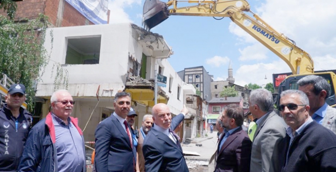 Konuşmaların ardından Muratpaşa Mahallesi’nde kentsel dönüşüm projesi için yıkım çalışmasına başlandı.