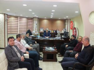 MÜSİAD Dışişleri sorumlusu İşadamı Fuat Demirin misafiri olarak Oltu'ya gelen MÜSİAD Başkanı Taner Bayır ve yönetim kurulu üyeleri kahvaltının ardından İşadamı Demir'in bürosunda toplantı yaptılar.