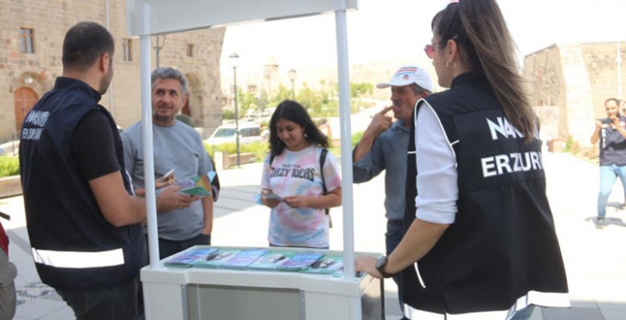 Kampanya bağlamında Çifte Minareli Medrese önünde stant kuran Narkotik Suçlarla Mücadele ekipleri vatandaşlara broşürler dağıtarak ve UYUMA (Uyuşturucuyla Mücadele Uygulaması) uygulamasını da tanıttı.