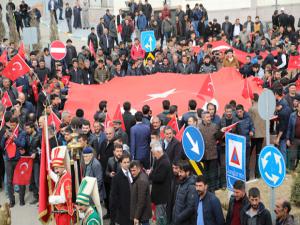 Protokol ve çok sayıda vatandaş Narman Merkez Camii önünde toplandı. Erzurum Büyükşehir Belediyesi Mehter Takımı eşliğinde Cumhuriyet Caddesinde, Şehitler Ölmez Vatan Bölünmez, En Büyük Asker Bizim Asker, Türkiye Türktür Türk Kalacak, şeklinde slogan atıp tekbir getiren topluluk ellerinde Türk Bayraklarıyla Atatürk Caddesine kadar yürüdü.
