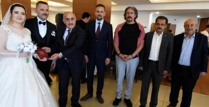 Kent Konseyi Başkanı Hüseyin Tanfer, Atatürk Üniversitesi Güzel Sanatlar Fakültesi Tiyatro Bölümünde doktora eğitimini sürdüren Neslihan (Narmanlıoğlu)-Talayman’a aile cüzdanını vererek genç çiftlere mutluluklar diledi.