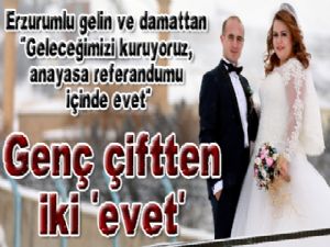 Erzurum'da dünya evine giren genç çift, nikah öncesi anayasa referandumu için 'evet' dedi.