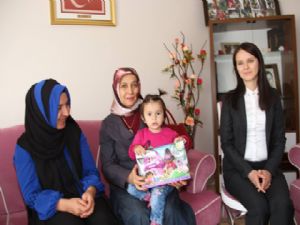 Ziyaret ettiği şehit eşi Asiye Yeşilay ve annesiyle birlikte bir süre sohbet eden Nilgün Azizoğlu, şehidin emaneti minik Miray'ı kucağına alarak oyuncak hediye etti.