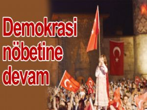 Milli iradenin bayraktarlığını yapan Dadaşlar, Başkomutan Recep Tayyip Erdoğan'ın talimatıyla gece gündüz meydanlarda ay yıldızlı bayrağımızla nöbet tutuyor. Yakutiye Kent Meydanı'nı dolduran Dadaşlar, okunan Kur'an-ı Kerim ve ilahiler, getirilen salavat-ı şerife ve tekbirlerle demokrasi nöbetine devam ediyor. Sabaha kadar meydanları, caddeleri, sokakları dolduran Erzurumlular, seher vaktinde Lalapaşa Cami'nde toplanarak teheccüd namazı kıldı ve okunan 2 bin 71 hatmin duasına hep bir ağızdan 'âmin' dedi. Ellerini semaya açarak Yüce Allah'a niyazda bulunan Dadaşlar, tüm mazlumların ve İslam ümmetinin umudu olan aziz milletimiz, vatanımız ve devletimizin bekası için Cenab-ı Hakk'a hep bir ağızdan, "Yarabbi Başkomutanımızı muzaffer eyle, devletimizi payidar eyle, vatanımızı, milletimizi, her türlü iç ve dış ihanet, tehlike, sıkıntı ve felaketlerden muhafaza eyle" diye dua ederek dosta düşmana mesaj verdi. Bu arada demokrasi nöbetine katılan Sedat Uçan, Erzurumlularla birlikte ilahi ve kaside okudu.