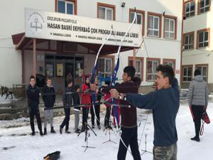 Erzurum'un Pazaryolu ilçesinde Hasan Basri Demir Bağ Çok Programlı Anadolu Lisesi, öğrencilerinin dikkat eksikliğini ata sporu olan okçuluk ile yeniyor.