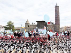 Yakutiye Kent Meydanında düzenlenen 'Bisiklet Dağıtım Töreni'ne Vali Ahmet Altıparmak, AK Parti Erzurum Milletvekili İbrahim Aydemir ve protokol mensupları ile öğrenciler katıldı.