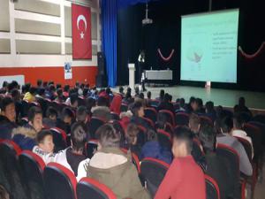 İlce Halk Eğitim Merkezinde düzenlenen programa Trafik Şube ekipleri, ilçede faaliyet gösteren lise ve dengi okul öğrencileri katılım sağladı.
