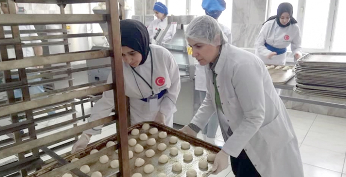 Arama kurtarma ekiplerinin büyük mücadele verdiği deprem bölgesinin ekmek ihtiyacını karşılamak için Erzurum Hamidiye Mesleki ve Teknik Anadolu Lisesi öğretmen ve öğrencileri seferber oldu.