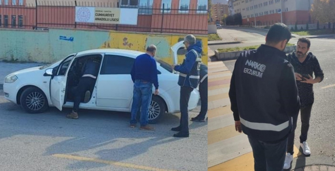 Erzurum kent merkezinde bulunan 19 riskli okul ve çevresinde 3 bölgede 9 Ekip ve 90 personelin katılımıyla narkotik madde arzı ile mücadele kapsamında uyuşturucu madde kullanan ve ticaretini yapan şahıslara yönelik gerçekleştirilen Narko Okul Uygulamasında; 225 şahıs, 25 araç kontrol edildi.