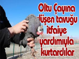 Oltu ilçesinde çaya düşen tavuk itfaiye ekiplerinin yardımıyla kurtarıldı.