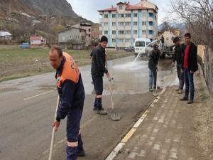 Belediye işçileri caddelerde bahar temizliği yaparken, yollarda oluşan çukurlar dolduruluyor.