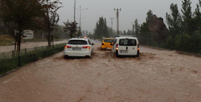 Erzurum’un Oltu ilçesinde öğleden sonra yağan sağanak yağmur hayatı olumsuz etkiledi.