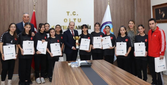 Oltu Kaymakamı Mustafa Çiftçi, ilçenin gururu haline gelen Cumhuriyet Ortaokulu Hentbol Takımı’nı makamında kabul etti. Oltu Kaymakamı, son dört yıldır okul sporları il müsabakalarında yenilgi yüzü görmeyen ve dördüncü kez üst üste il birincisi olma başarısı gösteren takıma teşekkür etti.