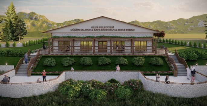 Olur merkez mahallesinde 2.5 dönüm arsa üzerine 700 metrekare inşaat alanı, 1.5 dönüm oto parkı olacak modern düğün salonu temeli atıldı.