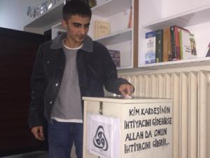 Erzurum Lisesi Müdürü Selami Güneş ile öğrencilerinin başlatmış olduğu Sadaka Taşı projesi tespit edilen ihtiyaç sahibi öğrencilere destek oluyor.