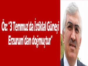 Başkan Öz, 98'nci yıl önceki coşku ve heyecanı yaşadıklarına belirterek, "Mustafa Kemal Paşa, Millî Mücadele'yi teşkilâtlandırmak üzere 19 Mayıs 1919 tarihinde Samsun'da Anadolu topraklarına ayak Mustafa Kemal Paşa, Millî Mücadele'yi teşkilâtlandırmak üzere 19 Mayıs 1919 tarihinde Samsun'da Anadolu topraklarına ayak basışını takiben, Havza-Amasya-Tokat-Sivas-Erzincan üzerinden 3 Temmuz 1919 günü Erzurum'a gelmiştir. Erzurum Kongresi'ne giden yolda atılmış çok önemli adımlardan birisi olarak kabul ettiğimiz 3 Temmuz 1919 günü, bir milletin yeniden şahlanışına ve bağımsızlığa giden yolda her türlü engelin aşılmasına şahitlik etmiştir. Çünkü, ülkenin kaderini belirleyen Erzurum Kongresi ve ardından toplanan Sivas Kongresi, 3 Temmuz'da Erzurum'da doğan istiklal güneşinin ve bu günde başlatılan kutlu mücadelenin bir eseridir. 3 Temmuz 1919'da Erzurum'a teşrif eden Gazi Mustafa Kemal Paşa'ya 'Bu milletle neler yapılmaz ki' dedirten de, 98 yıl önce bugün hürriyet aşkıyla şekillendirilen işte bu tablodur." dedi.