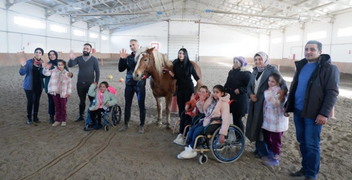 Atatürk Üniversitesi Manej Alanı'nda atlara binen ve alanda bir takım etkinliklerde doyasıyla eğlenen özel gereksinimli çocukların mutlulukları gözlerinden okundu.