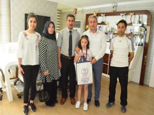 Özel Sporcular Federasyonu tarafından İzmirde yapılan Türkiye şampiyonasında Down Sendromlu sporcular kategorisinde birincilik kürsüsüne çıkan Antrenör İsmail Güler yönetimindeki Sümeyye Uruk, büyük başarısını Gençlik Hizmetleri ve Spor İl Müdürü Fuat Taşkesenligil ile paylaştı.