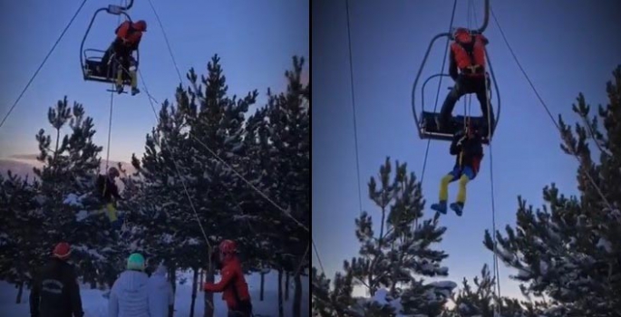 “Erzurum Palandöken’de bir otele ait kayak pistindeki telesiyejin arızalanması sonucu vatandaşlarımızın mahsur kaldığı ihbarının alınması üzerine, Jandarma Arama Kurtarma Timlerimiz bölgeye sevk edilmiş, yapılan çalışmalar sonucunda 8 telesiyejdeki 17 vatandaşımız kurtarılmıştır”