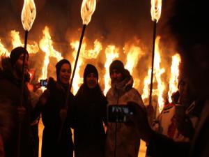Palandökende deniz seviyesinden 2 bin 500 metre yükseklikte bulunan Dedeman Oteli önündeki kayak pistinde düzenlenen yeni yıl kutlaması akşam saatlerinde başladı. Otelin balo salonunda canlı müzik ve oryantal eşliğinde eğlenen konuklar, meşaleli gece kayağı ardından havai fişek gösterisini izledi. Rusya, Polonya, İran ve Hollandanın yanı sıra Türkiyenin dört bir tarafından Palandökene gelen turistler ve tatilciler, hava sıcaklığının sıfırın altında 15 dereceye düştüğü gecede dilek balonlarını uçurdu ve çalınan şarkılara eşlik etti. Turistler, karda dans eden oryantal Nagehana da eşlik etti.