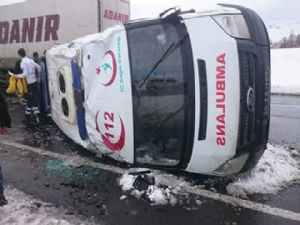 Erzurum'un Pasinler ilçesinde hasta taşıyan ambulans kaza yaptı. Kazada üç kişi yaralandı.