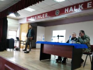 Halk Eğitim Merkezi Müdürlüğü toplantı salonunda İlçe Emniyet Müdürü İbrahim Coşkun ve İlçe Jandarma Komutanı Yunus Baysal'ın katılımı ve Komutan Yardımcısı Ufuk Gürocak'ın sunumunu yaptığı "İletişim Yoluyla Dolandırıcılık" konulu seminere 42 Mahalle Muhtarı ve Belediye Encümen Üyeleri katıldı.