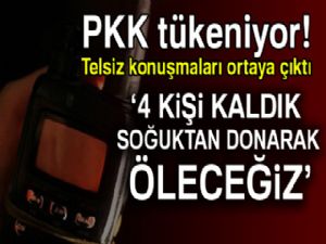 Irak'ın kuzeyinde Türkiye sınırına yakın bölgede geçen hafta sonu kaydedildiği öğrenilen iki terörist arasındaki 7 dakikalık telsiz konuşmasının ayrıntıları ise örgütün durumunu ortaya koyuyor:
