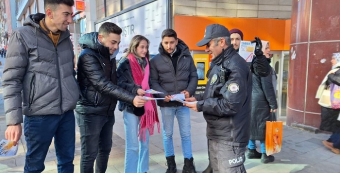 Erzurum Emniyet Müdürlüğü tarafından yapılan açıklamada, “Yakutiye İlçe Emniyet Müdürlüğü sorumluluk alanımızda dolandırıcılık konusunda vatandaşımızın daha bilinçli hale getirilmesi amacıyla toplam 150 broşür ve 6 afiş halkın yoğun olduğu Cumhuriyet Cad. Terminal Cad. Taş Mağazalar, Lalapaşa meydanı vb. yerlerde dağıtımı yapılmıştır.” denildi.