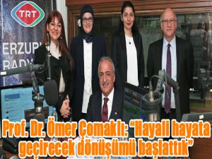 Rektör Çomaklı, misafir ettiği konukları ve yayına taşıdığı konu başlıkları ile şehrin nabzını tutan TRT Erzurum Radyosunun canlı yayınına katıldı. Atatürk Üniversitesinde başlayan dönüşümden geliştirilen projelere, bilimsel çalışmalardan kültürel faaliyetlere kadar birçok konuda bilgi paylaşımında bulunan Rektör Prof. Dr. Çomaklı, merak edilen soruları içtenlikle yanıtladı.