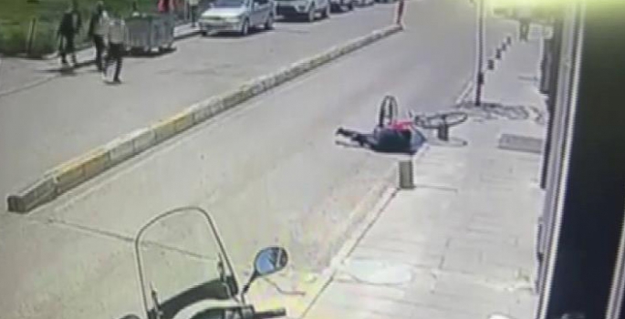 Erzurum bir çocuk arkadaşının freni olmayan bisikletini alıp yokuş aşağı inerken duramayıp önce paralel geldiği caddede orta refüje çarptı ve çarpma sonrası karşı kaldırım dibine tepesi üstüne düştü.