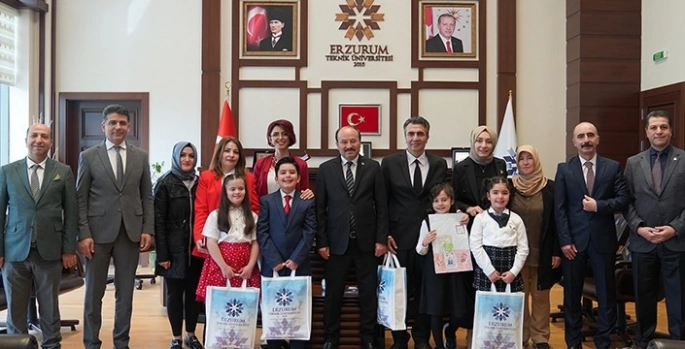 Rektör Çakmak, 23 Nisan Ulusal Egemenlik ve Çocuk Bayramı kutlamaları dolayısıyla Palandöken İlkokulu’nda öğrenim gören öğrencileri makamında ağırlayarak bayramlarını kutladı.
