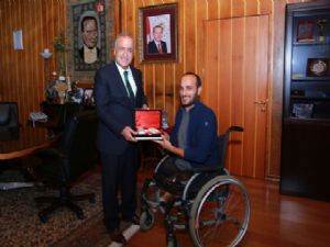 Ziyaretin ardından Rektör Çomaklı, Gazi Yahya Kemal Çalayır'a çeşitli hediyeler takdim etti.