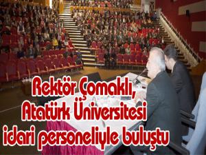 Kurum dışı istişare toplantılarının yanında kurum içi görüşmelerini de sürdüren Atatürk Üniversitesi Rektörü Prof. Dr. Ömer Çomaklı, üniversitede görev yapan idari personel ile 15 Temmuz Milli İrade Salonunda bir araya geldi.