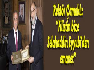 Atatürk Üniversitesinin, Yükseköğretim Kurumu (YÖK) tarafından Filistinle ilgilenilmesi için görevlendirildiğini söyleyen Rektör Çomaklı, Filistin bize Selahaddin Eyyubiden emanet. Bunun için bir ayağımız adeta Filistinde. YÖK Başkanlığımızın verdiği görevi layıkıyla yerine getiriyoruz. Filistindeki birçok üniversiteyle temas halindeyiz. Karşılıklı işbirliği ve protokollerle bu ilişkilerimizi daha da sağlamlaştırıyoruz. Akademisyen ve öğrenci değişimiyle de hem eğitim, hem de kültürel anlamda bir bağ kuruyor, üniversitemizde eğitim gören Filistinli öğrencilerimizi kendi evlatlarımızdan ayrı tutmuyoruz ifadelerini kullandı.