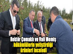 Hükümlü işçilerin ürettiği ürünleri inceleyen ve yetiştirdikleri meyveleri tadan Rektör Çomaklı, projenin; hükümlülerin meslek edinmeleri ve tekrar topluma kazandırılmaları noktasında önemine dikkat çekerek emeği geçenlere teşekkür etti.
