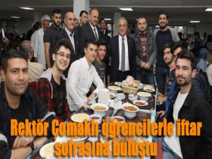 Merkezi yemekhane ile önünde kurulan iftar çadırını ziyaret eden ve iftar saatine kadar öğrencilerle sohbet eden Rektör Çomaklı, öğrencilerin sorunlarını, görüş ve isteklerini dinledi. Yapılan her hizmetin öğrenciler için gerçekleştiğini belirten Çomaklı, ezanın okunmasıyla birlikte iftarını öğrencilerle birlikte açtı.