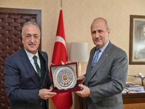 Ziyaretlerinde Ulaştırma ve Altyapı Bakanı Mehmet Cahit Turhan ve Bakan Yardımcısı Enver İskurta Atatürk Üniversitesinin özverili çalışmaları hakkında bilgi veren Rektör Çomaklı, Ata Teknokentin Üniversite-Sanayi İş Birliği Modeli sayesinde gerçekleştirilen projeleri anlattı.