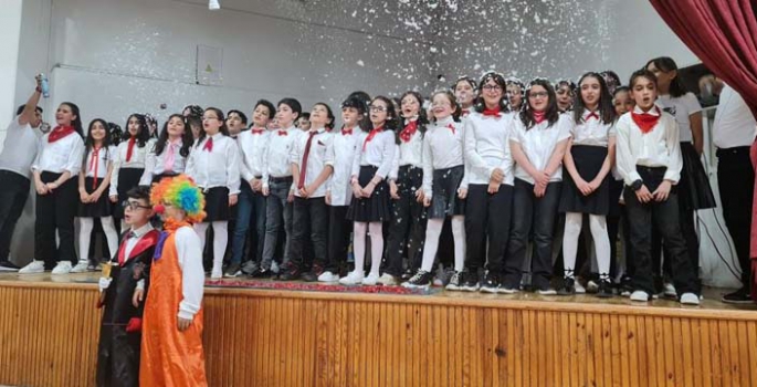 Erzurum Sabancı ortaokulu 5. sınıf öğrencileri eğlenceli İngilizce ve Türkçe şarkılarıyla skeçleriyle davetler ile ailelere unutulmaz anlar yaşattı. Şarkıları İngilizce seslendiren ve skeçleriyle büyüleyen öğrenciler, başarılı performanslarıyla alkış aldı.