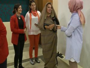 Erzurum Girişimci Kadılar Derneği Başkanı Zekiye Çomaklı, Erzurum'a gelen Safiye Soyman'a ehram hediye etti. Ehramın nasıl bir özelliği olduğunu merak eden Soyman Zekiye Çomaklı'dan Ehram hakkında bilgi aldı.